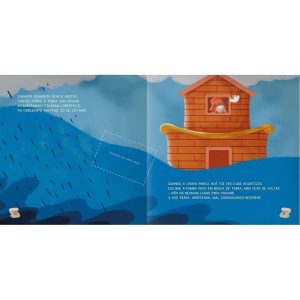A Arca de Noé, conhecida por todos, agora é contada do ponto de vista dos animais após uma descoberta que fizeram no meio da floresta: um barco enorme está sendo construído por um homem em terra seca. Para que serviria esse barco? Por onde ele iria navegar? Essas e outras perguntas serão respondidas aos pequenos leitores que desejarem se aventurar nessa história bem-humorada e cheia de amor e esperança.