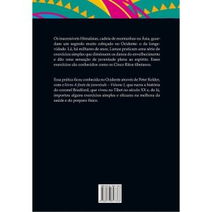 “Peter Kelder narra a descoberta de uma sabedoria milenar oriental. Os inacessíveis Himalaias, cadeia de montanhas na Ásia, guardam um segredo muito cobiçado no Ocidente: o da longevidade. Lá, há milhares de anos, Lamas praticam uma série de exercícios simples que diminuem os danos do envelhecimento e dão uma sensação de juventude plena ao espírito. Esses exercícios são conhecidos como os cinco ritos tibetanos. Essa prática ficou conhecida no ocidente através de Peter Kelder, com o livro A fonte da juventude, que narra a história do coronel Bradford, que viveu no Tibet no século XX e, de lá, importou alguns exercícios simples e eficazes na melhora da saúde e do preparo físico. A fonte da juventude (Vol. 1) ganha, agora, uma edição ampliada, com ilustrações e o acréscimo do “capítulo perdido”, fruto de anotações do autor, encontradas postumamente. “