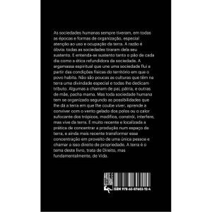 As sociedades humanas sempre tiveram, em todas as épocas e formas de organização, especial atenção ao uso e ocupação da terra. A razão óbvia: Todas as sociedades tiraram dela seu sustento. E entenda-se sustento tanto o pão de cada dia como a ética refundidora da sociedade. A argamassa espiritual que une uma sociedade flui a partir das condições físicas do território em que o povo habita. Não são poucas as culturas que têm na terra uma divindade especial e todas lhe dedicam tributo. A terra é o tema deste livro, trata de Direito, mas fundamentalmente, de Vida.