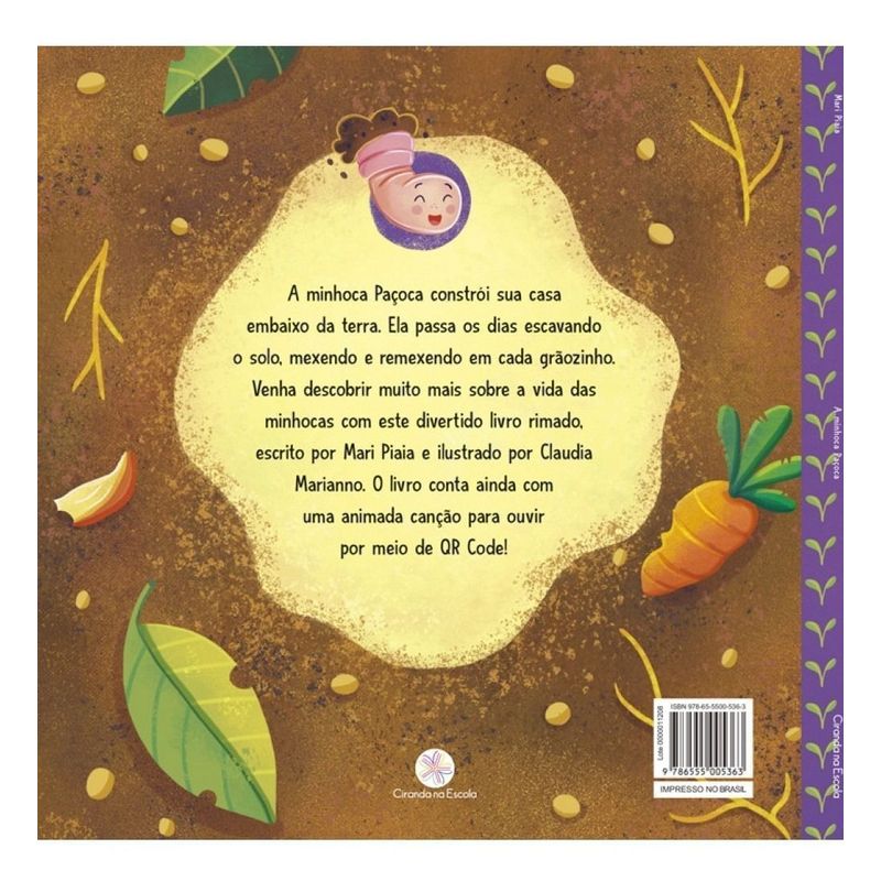 A minhoca Paçoca constrói sua casa embaixo da terra. Ela passa os dias escavando a terra, mexendo e remexendo em cada grãozinho. Venha descobrir muito mais sobre a vida das minhocas com esse divertido livro rimado, escrito por Mari Piaia e ilustrado por Claudia Marianno. O livro conta ainda com uma animada canção!