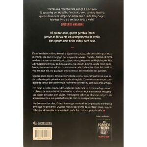 Há quinze anos, quatro garotas foram passar as férias em um acampamento de verão. Apenas uma delas voltou para casa. Duas verdades e uma mentira. Quem seria capaz de descobrir qual era a mentira? Era essa a brincadeira que as garotas Vivian, Natalie, Allison e Emma faziam em sua minúscula cabana no Acampamento Nightingale. Mas a diversão chegou ao fim quando Emma, ainda meio dormindo, viu as outras saírem da cabana na calada da noite. Essa foi última vez em que ela, ou qualquer outra pessoa, teve notícia das amigas. Quinze anos depois, Emma é convidada a voltar ao acampamento, que seria reaberto pela primeira vez desde a tragédia. Ela vê nisso uma oportunidade de tentar descobrir o que realmente aconteceu com as três garotas. Em meio a rostos conhecidos, cabanas inalteradas e o mesmo lago escuro, objeto de tantas histórias e lendas, ela começa a encontrar misteriosas pistas deixadas por Vivian, mensagens sobre as obscuras origens do acampamento e sua possível relação com os desaparecimentos. Com o passar dos dias, Emma investiga as mentiras do passado e enfrenta ameaças no presente. Quanto mais se aproxima da verdade, mais ela percebe que desvendar esse mistério pode custar sua própria vida.