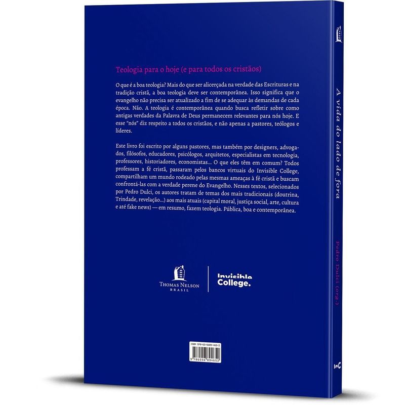 Teologia para o hoje (e para todos os cristãos) O que é a boa teologia? Mais do que ser alicerçada na verdade das Escrituras e na tradição cristã, a boa teologia deve ser contemporânea. Isso significa que o evangelho não precisa ser atualizado a fim de se adequar às demandas de cada época. Não. A teologia é contemporânea quando busca refletir sobre como antigas verdades da Palavra de Deus permanecem relevantes para nós hoje. E esse nós diz respeito a todos os cristãos, e não apenas a pastores, teólogos e líderes. Este livro foi escrito por alguns pastores, mas também por designers, advogados, filósofos, educadores, psicólogos, arquitetos, especialistas em tecnologia, professores, historiadores, economistas… O que eles têm em comum? Todos professam a fé cristã, passaram pelos bancos virtuais do Invisible College, compartilham um mundo rodeado pelas mesmas ameaças à fé cristã e buscam confrontá-las com a verdade perene do evangelho. Nesses textos, selecionados por Pedro Dulci, os autores buscam tratam de temas dos mais tradicionais (doutrina, Trindade, revelação…) aos mais atuais (capital moral, justiça social, arte, cultura e até fake news) — em resumo fazem teologia. Pública, boa e contemporânea.