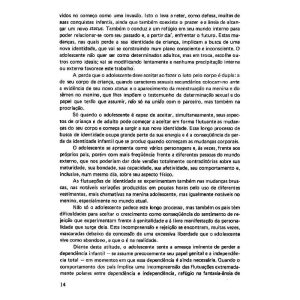 Este e o livro-fonte sobre psicodinamica da adolescencia. As caracteristicas da sindrome normal da adolescencia proposta pelos autores, que pressupoe um tenue limite entre a normalidade e a patologia como esperado para essa fase do desenvolvimento, e a descricao dos lutos a serem superados pelo jovem para supera-la com sucesso sao uteis para se ajudar os jovens e seus pais a entenderem e melhor manejarem os inevitaveis conflitos.