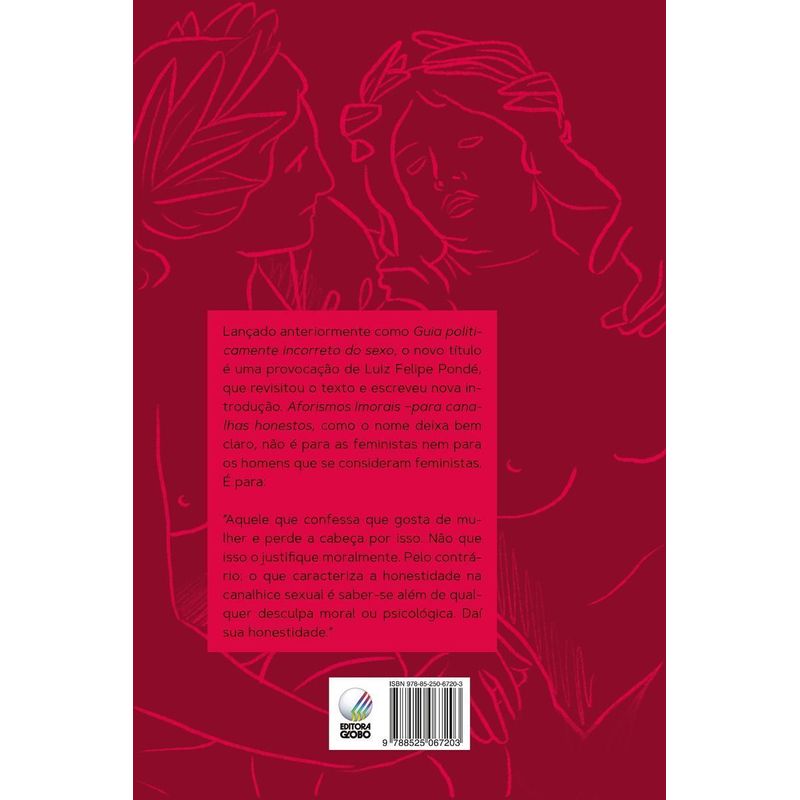 Aforismos imorais: para canalhas honestos é o novo e provocante título da obra de Luiz Felipe Pondé. Como deixa bem claro, a obra não é para feministas nem para homens que se consideram feministas. De acordo com o autor, o livro é uma obra para “aquele que confessa que gosta de mulher e perde a cabeça por isso. Não que isso o justifique moralmente. Pelo contrário: o que caracteriza a honestidade na canalhice sexual é saber-se além de qualquer desculpa moral ou psicológica. Daí sua honestidade”.