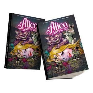 ALICE ENFIM REALIZOU SEU DESEJO. O País das Maravilhas é seu novo lar, mas os loucos residentes de um mundo lunático se voltaram contra ela. Enquanto a irmã de Alice, Edith, e seu amigo de infância, Earl, lutam por uma maneira de trazê-la de volta, Alice precisa decidir se seu tormento se deve ou não ao pai, a ela mesma ou talvez a uma curiosa combinação de ambos. Alice foi coroada a nova Rainha de Copas, mas a posição parece vir com mais obrigações que poder. Embora todos os residentes do País das Maravilhas digam amá-la, Alice está começando a se perguntar se precisa de mais que um amigo. Talvez ela precise de uma família. No entanto, mesmo que Alice escape do País das Maravilhas e volte para casa, será o mesmo lar de que se lembra? O escritor superestrela Dan Panosian (An Unkindness of Ravens, Canary) e o artista Giorgio Spalletta (007: For King & Country) exploram o lado mórbido do escapismo neste conto distorcido que turva os limites entre fantasia e realidade.