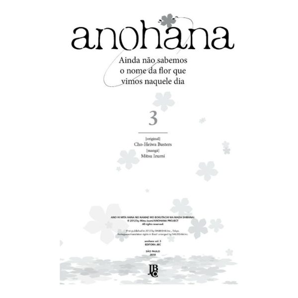 Os Super Peace Busters vão à casa da família Honma para pedirem autorização para a queima dos fogos em homenagem à Menma. No entanto, eles são recepcionados com um triste e duro desabafo da mãe da menina que não consegue aguentar ver os cinco amigos se divertindo às custas da filha. Será que os Busters continuarão com o projeto de lançamento do ‘foguete’? Ou melhor, será que esse é mesmo o desejo da pequena Menma?! Confira neste emocionante volume final de AnoHana!