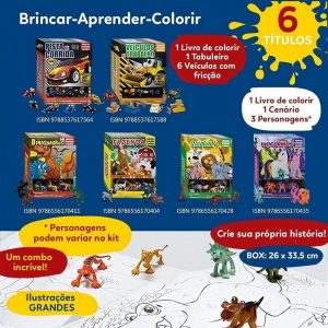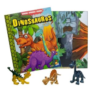 Ler, pintar e brincar para aprender as primeiras palavras com muita diversão! No kit você irá encontrar: • um LIVRO com CENÁRIO para ler e colorir. • fantásticos DINOSSAUROS para brincar.
