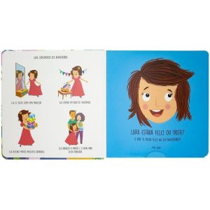 Este livro encantador une diversão e aprendizado, com abas que permitem à criança explorar diversas emoções. Ao mudar as expressões faciais dos personagens, o pequeno leitor aprende a identificar e compreender seus próprios sentimentos de maneira divertida. Além disso, ao manipular as abas do livro, desenvolve sua coordenação motora fina e destreza manual.