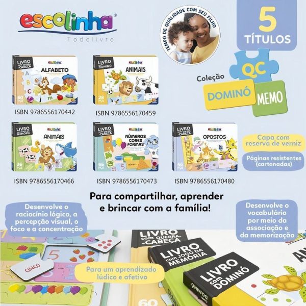 Reunindo temas fundamentais, esta obra desenvolve as habilidades necessárias para construir um fundamento sólido nos conceitos iniciais sobre números, cores e formas geométricas, por meio da associação e memorização. Além disso, estimula as habilidades cognitivas, psicomotoras (noção espacial) e a percepção visual, de forma lúdico-didática. Um livro para aprender e brincar com a família e os amigos!