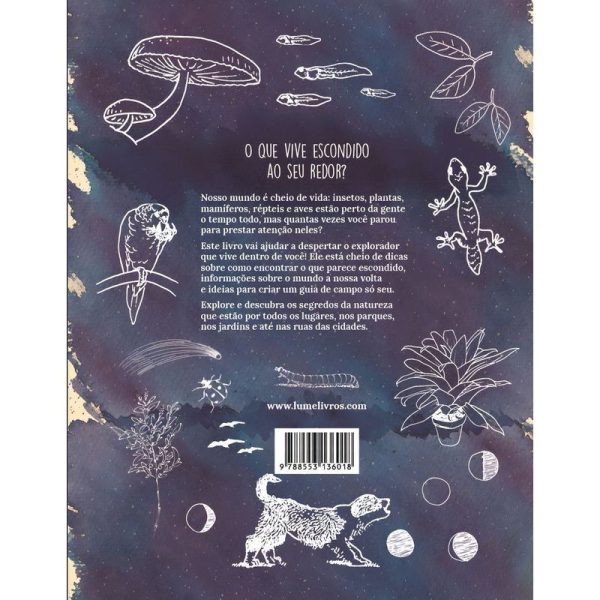 Guia de Campo para jovens exploradores é uma nova série da Lume Livros que convida os jovens leitores à explorarem o mundo ao seu redor e desenvolverem um olhar mais atento e crítico. O primeiro livro da série, parques e jardins, foca a exploração nos ambientes urbanos e semi-urbanos, nos quais a maioria de nós vive. Mesmo nas grandes cidades existe muita vida e fenômenos a serem descobertos, e este livro é o primeiro passo para acordar o explorador que vive dentro de todas as crianças. Guia de Campo combina informações sobre o mundo natural (animais, plantas, astronomia e clima), dicas de como explorar (uso do método científico, objetos que podem ser úteis no campo e até dicas de tecnologia) com sugestões de atividades para as crianças começarem a olhar o mundo com mais atenção. Este é um livro interativo! Ele vem com páginas em brancos para os pequenos completarem com suas descobertas, criando o primeiro de muitos guias de campo que estes jovens cientistas e exploradores vão viver.