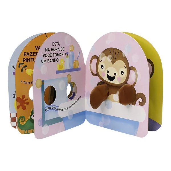 Os braços macios do macaco são incríveis para grandes abraços e carícias. Brinque com a criança enquanto você lê este livro dedoche interativo e afetuoso.