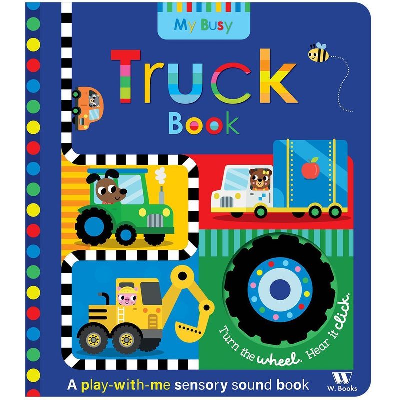 Trun the wheel and follow the trucks on their busy day as you explore this fun-filled sensory sound book. Perfect for toddlers!
