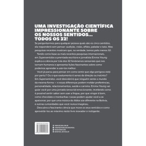 Uma investigação científica e reveladora sobre os nossos sentidos — todos os 32. Você já parou para pensar em como sente que algo perigoso está por perto? Ou o que é senso de direção ou instinto? Se perguntarmos a qualquer pessoa quais são os nossos sentidos ela responderá sem pensar: audição, visão, olfato, paladar e tato. Mas pesquisas recentes mostram que, na verdade, temos pelo menos 32.A premiada escritora e jornalista científica Emma Young passou mais de uma década pesquisando sobre os sentidos do ser humano e agora revela a ciência por trás dessas habilidades.Em Supersentidos, a autora nos guia por uma jornada sensorial singular, revelando, por exemplo, como saboreamos as coisas sem usar nossa língua, por que xingar faz bem e por que chocolate e montanhas-russas podem ajudá-lo a se apaixonar.Sem a compreensão dos nossos sentidos, não compreenderemos a forma fundamental como reagimos ao mundo exterior e interior. Supersentidos vai levar você por uma jornada pelos nossos sentidos e as coisas surpreendentes que eles podem fazer por nós.Você também descobrirá que ninguém sente o mundo da mesma forma — e essas diferenças podem influenciar preferências, personalidade, relacionamentos, saúde e até mesmo a carreira que escolhemos. E até mesmo por que o toque pode aliviar a dor e por que a música “Dancing Queen” do Abba soa diferente na Bolíviapartilhando histórias surpreendentes de como uma bailarina cega conseguiu se adaptar e criar um novo método de ensido de dança e até mesmo uma enfermeira que consegue sentir o cheiro da doença de Parkinson antes de ser diagnosticada, Supersentidos revela a ciência por trás dessas habilidades que nos tornam humanos. E oferece lições fascinantes sobre como podemos aprender a usá-las a nosso favor.Descubra a fascinante ciência que move os seus sentidos e como aproveitá-los ao máximo nesse livro inovador e instigante.“Fascinante… desvenda os segredos maravilhosos de nosso cérebro e de nosso corpo.” – Daily Mail