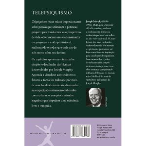 Edição de bolso deste livro do escritor best-seller Joseph Murphy. Telepsiquismo reúne relatos impressionantes sobre pessoas que utilizaram o potencial psíquico para transformar suas perspectivas de vida, obter sucesso em relacionamentos ou progresso na vida profissional. Em cada capítulo você encontrará instruções simples e detalhadas das técnicas desenvolvidas por Joseph Murphy que lhe permitirão levar uma vida mais plena Telepsiquismo, você aprenderá a visualizar acontecimentos futuros e torná-los realidade por meio de suas faculdades mentais, desenvolverá sua capacidade extrassensorial e saberácomo afastar as emoções e atitudes negativas que impedem uma existência livre e tranquila. Esta é mais uma obra de Joseph Murphy, autor de mais de 30 livros de autoajuda, muitos deles best-sellers em todo o mundo.