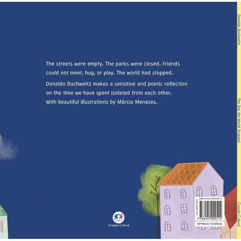 The streets were empty. The parks were closed. There was no more meeting with friends, no hugs, no jokes. The world stopped. The sensitive and poetic text by Donaldo Buchweitz, with beautiful illustrations by Márcia Menezes, brings a reflection on the moment we spent isolated, each one in his own home.