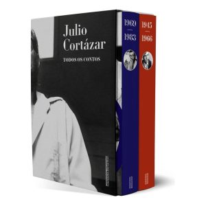 Pela primeira vez no Brasil, todos os contos do autor argentino, reunidos em dois volumes com capa dura, numa caixa com projeto gráfico especial. Vencedor do Prêmio Jabuti na categoria “Tradução”. “A verdadeira revolução de Cortázar está nos contos. Neles, Cortázar não experimentou: ele encontrou, descobriu, criou algo que não perece”, anotou o escritor Mario Vargas Llosa. Com novas traduções de Heloisa Jahn e Josely Vianna Baptista, uma edição com os contos completos de Julio Cortázar chega pela primeira vez ao leitor brasileiro. Considerado um dos autores mais inventivos do século XX, Cortázar modificou para sempre o gênero e escreveu clássicos como “Casa tomada”, “A autoestrada do sul”, “Carta a uma senhorita em Paris”, “Continuidade dos parques”, “As babas do diabo”, “A ilha ao meio-dia”, entre muitos outros. Esta edição de Todos os contos, em dois volumes com capa dura e mais de 1200 páginas, vem numa caixa com projeto especial de Elaine Ramos. Bestiário, Todos os fogos o fogo, As armas secretas, Octaedro, Fim do jogo, Histórias de cronópios e de famas, todos os livros fundamentais de Cortázar estão aqui. A edição conta ainda com os dois célebres ensaios do autor sobre a escrita de contos, “Alguns aspectos do conto”, de 1963, e “Do conto breve e seus arredores”, de 1969, além de um estudo do crítico argentino Jaime Alazraki sobre o Cortázar contista. “Em Cortázar, o conto é entendido como uma totalidade orgânica, uma narrativa de economia rigorosa, uma estrutura em tensão, limitada quanto ao tempo e quanto ao espaço, na qual todos os elementos devem estar, necessariamente, em função do efeito unitário do conjunto.” — Davi Arrigucci Jr.