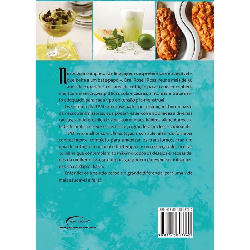 Neste guia completo, de linguagem despretensiosa e acessível – que beira a um bate-papo -, Dra. Roseli Rossi reúne mais de 30 anos de experiência na área de nutrição para fornecer conhecimentos e orientações práticas sobre causas, sintomas e tratamento adequado para cada tipo de tensão pré-menstrual. Os sintomas da TPM são ocasionados por disfunções hormonais e de neurotransmissores, que podem estar correlacionadas a diversas causas, sendo o estilo de vida, como maus hábitos alimentares e a falta de prática de exercícios físicos, o grande vilão desse sofrimento. “TPM: viva melhor com alimentação e controle'” além de fornecer conhecimento completo para amenizar os transtornos, traz um guia de nutrição funcional e fitoterápico e uma seleção de receitas culinária que contemplam ao máximo todos os desejos e necessidades da mulher nessa fase do mês, e podem e devem ser introduzidas no cardápio diário. Entender os sinais do corpo é o grande diferencial para uma vida mais saudável e feliz!