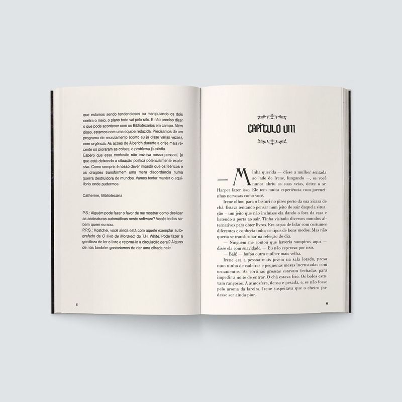 Quando a propria Biblioteca esta ameacada, como equilibrar a disputa entre a ordem e o caos? No quarto volume da serie A BIBLIOTECA INVISIVEL, Irene se ve em uma Nova York dos anos 1920, onde a Lei Seca impera, fedoras, vestidos de melindrosas e submetralhadoras Thompson estao na moda, e intrigas estao a todo vapor. Os intrepidos bibliotecarios Irene e Kai encontram-se no meio de uma competicao entre dragoes e parece que outro jovem bibliotecario envolveu-se na disputa. Se nao conseguirem tira-lo desta situacao, serias repercussoes politicas se abaterao sobre a misteriosa Biblioteca. E o equilibrio deste jogo de poder entre grandiosas faccoes podera desencadear uma guerra. Irene e Kai se veem em uma corrida contra o tempo (e dragoes) em busca de um livro raro. Eles enfrentarao gangsteres, chantagens e sistemas de seguranca diabolicos. E, se essa missao nao acabar bem, podera ter implicacoes desastrosas para o trabalho de Irene. E, consequentemente, para sua vida…