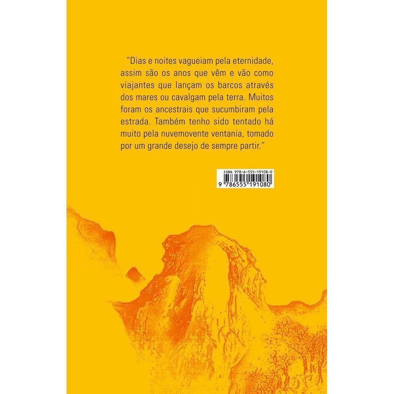 “Dias e noites vagueiam pela eternidade, assim são os anos que vêm e vão como viajantes que lançam os barcos através dos mares ou cavalgam pela terra. Muitos foram os ancestrais que sucumbiram pela estrada. Também tenho sido tentado há muito pela nuvemovente ventania, tomado por um grande desejo de sempre partir.” O poeta japonês Matsuo Basho (1644-1694) contemplava num harmonioso entardecer uma tranquila lagoa quando uma rã saltando sobre a água rompeu subitamente sua lisa superfície. Não com um forte ruído, mas com um som claro e distinto. Ao ouvir esse som cristalino, o poema fluiu quase que involuntariamente, Basho criaria neste momento o mais famoso de todos os haikais: velho lago mergulha a rã fragor d’água Basho percorreu os caminhos como poeta errante. Apresentamos aqui o ciclo completo de seus três principais relatos de viagem, traduzidos, pela primeira vez, diretamente do original: “Visita ao Santuário de Kashima” data de 1687 e consiste num pequeno relato repleto de haikais. Basho lança-se a pé pelas estradas e atravessa o país com o simples intuito de contemplar a lua cheia nascendo sobre o sagrado templo. No ano seguinte escreve “Visita a Sarashina”. Neste relato que descreve a subida de uma íngreme montanha, podemos vislumbrar todo o processo de iniciação ao zen-budismo com suas duras provas e dificuldades na trajetória, em que o neófito em meio a ferrenha luta consigo mesmo percorre a escarpada senda rumo ao despertar, aqui representado pelo clarão da lua cheia. três vezes vi a lua cheia num céu sem nuvens “Trilha estreita ao confim” que teria a duração de quatro anos, se inicia em 1689 quando Basho, não resistindo ao chamado dos deuses da estrada, é impelido às remotas províncias do norte, passando por paragens ainda hoje consideradas como longínquas e misteriosas. Nesta obra manifesta-se o fluir contínuo e errante através da eternidade, a cosmopulsante unidade estabelecida entre o elemento efêmero e mutável (Ryuko), e a imutável e eterna essência (Kyo). gota de orvalho (transitório – Ryuko) ao sol da manha (eterno – Kyo) Precioso diamante (unidade) Traduzidos magistralmente por Kimi Takenaka e Alberto Marsicano, este livro é um convite ao leitor para mergulhar na extraordinária experiência de um poeta fundamental para a poesia contemporânea.