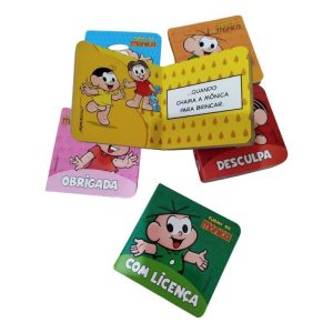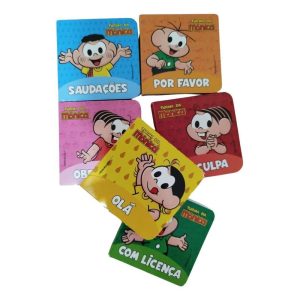 Obrigada! • Por favor! • Com licença! • Saudações • Olá! • Desculpa! As boas maneiras estão presentes no dia a dia de todas as pessoas. O que acha de aprendê-las e praticar? Com a Mônica, o Cebolinha, a Magali e o Cascão, será ainda mais fácil aprender. Consulte essa pequena biblioteca de boas maneiras sempre que precisar e divirta-se! Junto o verso dos livros para formar uma cena divertida!