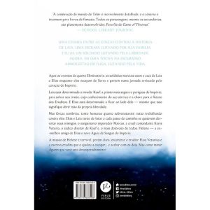 O segundo livro da história épica e eletrizante sobre liberdade, coragem e esperança de Sabaa Tahir. Uma chama entre as cinzas contou a história de Laia, uma escrava lutando por sua família, e Elias, um soldado lutando pela liberdade. Agora, em Uma tocha na escuridão, ambos estão em fuga, lutando pela vida.Após os eventos da quarta Eliminatória, os soldados marciais saem à caça de Laia e Elias enquanto eles escapam de Serra e partem numa jornada arriscada pelo coração do Império.Laia está determinada a invadir Kauf, a prisão mais segura e perigosa do Império, para salvar seu irmão, cujo conhecimento do aço sérrico é a chave para o futuro dos Eruditos. E Elias está determinado a ficar ao lado dela – mesmo que isso signifique abrir mão da própria liberdade.Mas forças sombrias, tanto humanas quanto sobrenaturais, estão trabalhando contra eles. Elias e Laia terão de lutar a cada passo do caminho se quiserem derrotar seus inimigos: o sanguinário imperador Marcus, a cruel comandante Keris Veturia, o sádico diretor de Kauf e, o mais doloroso de todos, Helene – a ex-melhor amiga de Elias e nova Águia de Sangue do Império.A missão de Helene é terrível, porém clara: encontrar o traidor Elias Veturius e a escrava erudita que o ajudou a escapar… e acabar com os dois. Mas como matar alguém que você ama desesperadamente? “Tahir prova ser uma mestre do suspense e uma astuta adepta de situações limite, instigando a atenção dos leitores do começo ao fim… Uma história repleta de ação, contada num ritmo de tirar o fôlego.” – Booklist “Esta continuação tem um tom mais sombrio e apostas ainda mais altas que o antecessor, preparando o cenário para a conclusão emocionante.”- Publishers Weekly “Excelente.” – Kirkus Reviews “A rara continuação que melhora o original… Impossível largar.” – Common Sense Media “Uma injeção de adrenalina até a última página.” – BuzzFeed “Uma tocha na escuridão é um daqueles livros que nos fazem virar as páginas sem mal parar para respirar.” – The Christian Science Monitor “Rápido, emocionante e cheio de adrenalina, Uma tocha na escuridão é tudo o que os fãs do primeiro livro poderiam desejar para a continuação.” – The Bucks County Courier Times “Envolvente em todos os sentidos… As apostas nunca foram mais altas, e a tensão é aguda conforme Elias e Laia correm pela vida.” – USA Today