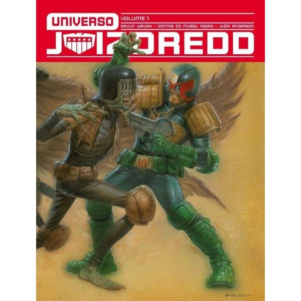 Universo Juiz Dredd é a nova publicação da Mythos apresentando grandes sagas e histórias completas de todos os cantos do Dredd-verso! Neste volume inaugural, temos quatro incríveis histórias: Justiça Sombria: Nosso anfitrião, JUIZ DREDD se junta a Juíza Anderson para enfrentar o quarteto do terror dos Juízes Negros, que invadiram a Mayflower, uma nave especial populada por 400 mil dos cidadãos mais ricos de Mega-City. Uma saga que marca o retorno de John Wagner ao mais marcante vilão de Dredd com arte pintada estonteante de Greg Staples, um dos artistas mais respeitados da 2000 AD, de Sláine, Contos de Telguuth e claro, Juiz Dredd. Nadando em Sangue: DEVLIN WAUGH, o agente bon-vivant do Vaticano enfrenta criaturas sobrenaturais na prisão subáquatica de Alcatraz, e ele vai ter que abandonar as regras para conseguir sobrevir. Uma história pelo criador de Devlin, John Smith e com arte de Sean Phillips, conhecido principalmente por suas extensas parcerias com Ed Brubaker como Criminal, Fade Out e Matar ou Morrer. Depois de Mim, O Dilúvio: Uma sinistra narrativa de paradoxo temporal em CONTOS DO MUSEU NEGRO por Alan Grant e Dylan Teague (ambos bastante conhecidos por seu trabalho na 2000 AD bem como por seus trabalhos em BATMAN) Shamballa: A mais cultuada história da JUÍZA ANDERSON encerra esse volume com chave de ouro. Ao redor do globo há um surto maciço de fenômenos psíquicos e as pessoas caem vítimas de visões e mania religiosa. Parece que o mundo está a beira de um apocalipse psíquico e a Juíza Anderson precisa viajar ao coração do Tibete para encontrar a fonte da perturbação. Por Alan Grant e com a arte extremamente detalhada de Arthur Ranson (Mundo dos Labirintos).