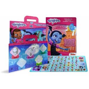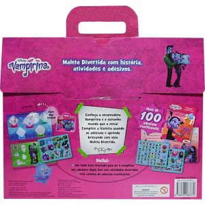 Conheça a encantadora Vampirina e o estranho mundo que a cerca! Complete a história usando os adesivos e aprenda brincando com esta Maleta Divertida. Maleta Divertida de história, atividades e adesivos. Mais de 100 adesivos reutilizáveis. Inclui: – Um lindo livro ilustrado para ler e completar. – Um tabuleiro dupla face com atividades divertidas. – Três cartelas de adesivos reutilizáveis.