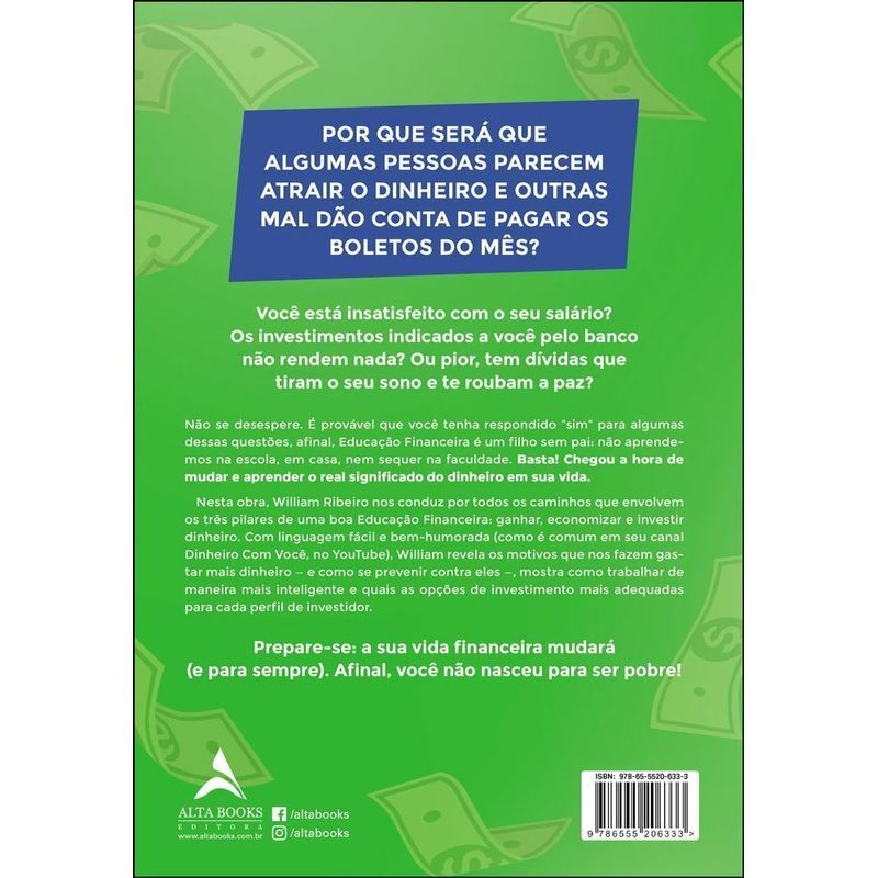 Nem todas as oportunidades são iguais, mas nossa atitude diante dos desafios da vida será sempre uma escolha. E se podemos escolher como nos comportaremos, também podemos escolher o que precisamos aprender. Logo, Educação Financeira é uma escolha. Em Você Não Nasceu para Ser Pobre, William nos leva em uma jornada pela verdadeira Educação Financeira, aquela que pode ser praticada por qualquer um e que se baseia em premissas simples, porém poderosas. Algumas conclusões importantes que este riquíssimo livro contém: • A independência financeira não pode ser apenas um sonho distante. A história pessoal de William, contada neste livro, é inspiradora nesse sentido. • Muitos mitos e crenças que carregamos desde pequenos têm um peso enorme nas conquistas financeiras (ou falta delas) ao longo da vida. Nós temos escolha para lidar com essa situação, e William nos mostra o caminho. • Economizar dinheiro tem mais a ver com nosso estilo de vida do que com planilhas. O livro é cheio de ótimos exemplos disso. • Ganhar dinheiro é bom e faz bem. William explica que você precisa aprender a investir, mas antes tem que aprender a gerar mais riqueza. Você não nasceu para ser pobre. Com uma linguagem simples e direta, William oferece lições importantes para mudar nossa relação. William idealizou e se dedica ao Dinheiro Com Você, projeto que detém um dos maiores canais de Educação Financeira no Youtube no Brasil. É engenheiro da computação pelo Instituto Nacional de Telecomunicações (Inatel), possui MBA em Gestão Empresarial pela Fundação Getúlio Vargas. Atua como um educador financeiro, o que acabou se tornando o maior propósito da sua vida.