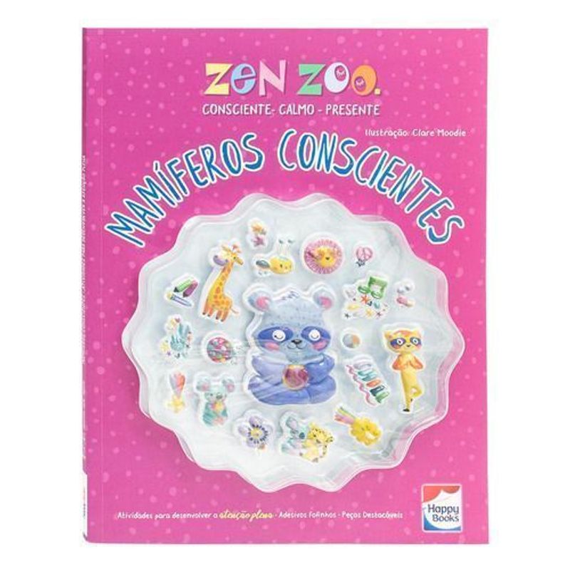 É hora de partir para uma AVENTURA com todos os mamíferos no ZOOLÓGICO ZEN! Cada animal tem um poder ESPECIAL para você se divertir. Complete as palavras-cruzadas, faça um pouco de pintura consciente, leia as dicas de respiração abdominal, e divirta-se com os ADESIVOS fofinhos e peças DESTACÁVEIS!